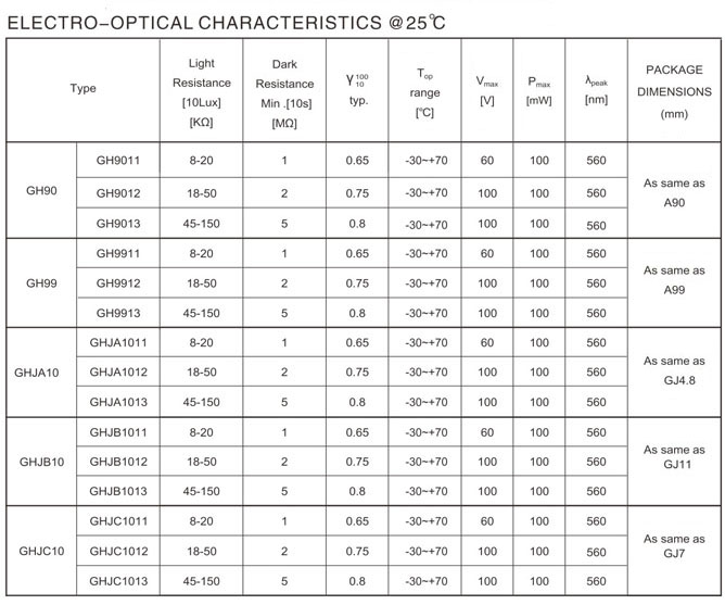 RoHS Compliance Photocells SeriesHome >> Products >> Photoresistance Cells >> RoHS Compliance Photocells Series