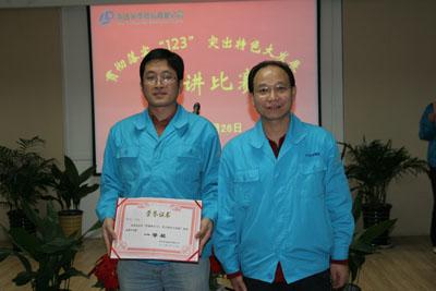 | ??????? 虎步奔騰開勝景,春風(fēng)浩蕩展鴻圖。為促進(jìn)公司各單位認(rèn)真領(lǐng)會(huì)集團(tuán)公司“3333”戰(zhàn)略和利達(dá)光電“123”戰(zhàn)略的深刻內(nèi)涵,進(jìn)一步激勵(lì)員工統(tǒng)一認(rèn)識(shí),轉(zhuǎn)變觀念,增強(qiáng)信心,立足崗位,奮發(fā)有為,努力實(shí)現(xiàn)公司2010年經(jīng)營(yíng)目標(biāo),3月26日晚上7點(diǎn),利達(dá)光電黨總支在104#四樓培訓(xùn)室舉辦了“貫徹落實(shí)123,突出特色大發(fā)展”演講比賽。利達(dá)光電總經(jīng)理李智超和各單位員工代表一起來到演講比賽現(xiàn)場(chǎng),聆聽我們利達(dá)員工春天的戰(zhàn)歌,給參賽選手們帶來了莫大的鼓勵(lì)和支持。在充滿激情的《學(xué)習(xí)123 踐行123》的詩朗誦中演講比賽拉開了帷幕。當(dāng)晚共有11名選手參加比賽,演講內(nèi)容以123戰(zhàn)略為指導(dǎo),緊密結(jié)合各單位工作實(shí)際和本職工作。選手們精彩的演講中飽含著激情,帶來了感動(dòng),大家盡情暢談了自己對(duì)123戰(zhàn)略的理解,彰顯了科技人員和基層員工、奮力拼搏、積極向上的良好精神風(fēng)貌。選手們以充實(shí)的內(nèi)容、優(yōu)美的語言和飽滿的感情贏得了評(píng)委和聽眾們的陣陣掌聲。 ??????? 來自精密薄膜工程部的李曉佳的演講內(nèi)容給大家內(nèi)心留下了很深的觸動(dòng)。她給我們講述的是車間一名普通班長(zhǎng)的故事,那是一個(gè)愛崗敬業(yè),無私奉獻(xiàn),值得尊敬的班長(zhǎng)。為了干好自己的本職工作,盡職盡責(zé),加班加點(diǎn),即使發(fā)燒也要堅(jiān)持把工作保質(zhì)保量的完成。這是多么可貴的一種愛崗敬業(yè)的精神啊,敲動(dòng)著我們內(nèi)心最深處的感動(dòng),讓我們內(nèi)心不禁對(duì)這樣一位班長(zhǎng)肅然起敬。她是我們學(xué)習(xí)的榜樣,是愛崗敬業(yè),無私奉獻(xiàn)的榜樣。騰飛發(fā)展中的利達(dá)正是需要很多個(gè)這樣普通而又可敬的基層班長(zhǎng),帶領(lǐng)我們廣大員工用自己勤勞的雙手和智慧創(chuàng)造出一個(gè)又一個(gè)新的突破,譜寫一曲又一曲新的輝煌。 ??????? 在當(dāng)晚比賽中11位選手都激情澎湃,信心滿懷。平日里,他們都是在車間兢兢業(yè)業(yè)、默默的勞作,而今晚,他們變成了舞臺(tái)上的主角,各自在賽場(chǎng)上盡情揮灑才情,侃侃而談,在利達(dá)這片廣闊的天際里,自由地展翅翱翔。 ??????? 最終,投影事業(yè)本部獲得了此次演講比賽的組織獎(jiǎng)。朱高磊獲得了一等獎(jiǎng)。崔銀英、張文勇獲得了二等獎(jiǎng)。李慧東、田冬梅,朱清濱獲得了三等獎(jiǎng)。李曉佳、王芳、買靜、蘭勇、李文嘉獲得了比賽優(yōu)秀獎(jiǎng)。 李總在會(huì)上講話,對(duì)此次演講比賽給予了很高的評(píng)價(jià)和肯定。李總認(rèn)為此次演講比賽舉辦的很成功,很有特色,包含了利達(dá)公司各個(gè)方面,還涉及到模具,電子,安全等等多方面全方位;各位選手演講內(nèi)容都是緊密結(jié)合自身工作實(shí)際,求真務(wù)實(shí),立足本職工作崗位;參賽選手都來自基層,演講的內(nèi)容反映了公司的當(dāng)前現(xiàn)狀,代表了廣大員工的心聲。李總對(duì)選手們精彩的演講表示祝賀,并希望公司以后多多開展類似此類的活動(dòng),鼓舞士氣,展示利達(dá)員工昂揚(yáng)的斗志和激情。同時(shí)李總對(duì)選手們也給予了殷切的希望,年輕的一代代表著公司發(fā)展的希望,充滿著朝氣與活力。李總鼓勵(lì)大家一定要扎實(shí)打好基礎(chǔ),健康成長(zhǎng),實(shí)現(xiàn)自身的可持續(xù)發(fā)展,在工作中創(chuàng)造出新的輝煌。 ??????? 下圖是現(xiàn)場(chǎng)剪影: |