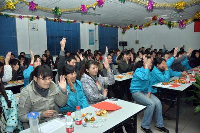 ??????? 1月16日晚19:30,利達光電二〇一二年迎新春聯(lián)歡會在104四樓培訓(xùn)室激情上演,公司領(lǐng)導(dǎo)和員工110余人歡聚一堂,共迎新春佳節(jié),整個會場喜氣洋洋,春意濃濃,溫馨祥和。各事業(yè)部、車間、職能部室的職工們自編自演的三句半、單口相聲、歌伴舞、小品、吉他獨奏、合唱等精彩節(jié)目,用飽滿的熱情來表達對龍年新春的祝福,表達了對新年的期盼,對未來美好生活的向往以及與公司同呼吸、共命運、再鑄新輝煌的信心與決心。