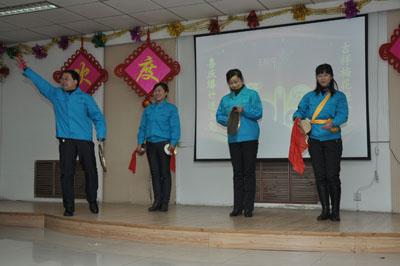 ??????? 聯(lián)歡會在詩朗誦《土地----致利達光電》優(yōu)美的旋律中拉開了帷幕。聯(lián)歡會在歌伴舞《中國話》的熱烈、奔放的氣氛中活躍,一下子把觀眾的開心、歡樂的情緒調(diào)動起來。三句半《喜迎新春》、《利達發(fā)展新事多》鼓、鑼、镲交替清脆鳴響,四人輪番上陣道輝煌,尤其是節(jié)目臨近結(jié)束時四人合力送出的舞蹈,帶出了祥和、喜慶、熱烈的新春氣息;小品《新白娘子》用現(xiàn)代版的語言和行為方式,表演者古今臺詞合用頗具幽默風(fēng)趣,臺上笑料迭出,臺下笑聲、掌聲不斷,晚會現(xiàn)場成了歡樂的海洋。行政部選送的小品《使命》、《職責(zé)》,構(gòu)思獨特,表演形式新穎,武打動作逼真,表達了公司員工熱愛企業(yè),對待自己的工作愛崗敬業(yè)、恪盡職守;單口相聲《我的優(yōu)點》語言幽默風(fēng)趣、捧哏逗哏配合默契,表演惟妙惟肖,將公司2012年的新氣象一一呈現(xiàn);吉他彈唱《老男孩》、粵語歌曲獨唱《真的愛你》等豐富多彩的節(jié)目,展現(xiàn)了利達人多才多藝、能歌善舞。五次抽獎穿插整臺聯(lián)歡會始終,不斷將聯(lián)歡會推向高潮,穿插的抽獎環(huán)節(jié)使現(xiàn)場員工驚喜萬分。聯(lián)歡晚會伴隨著《明天會更好》的優(yōu)美旋律圓滿結(jié)束。
