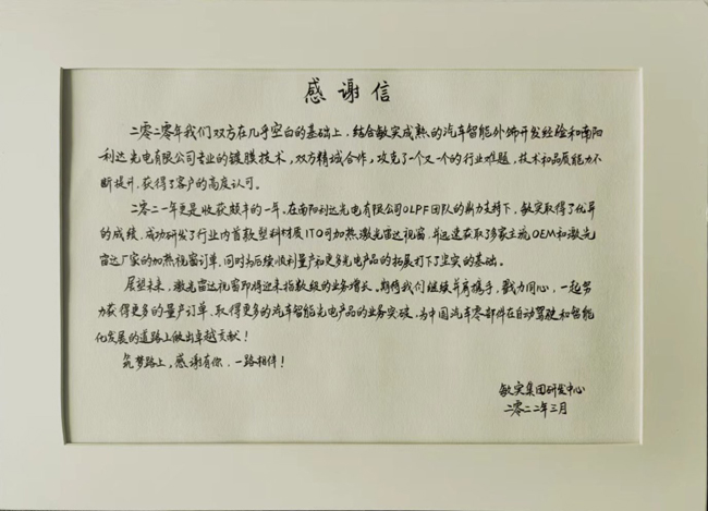??????? 2022年6月30日,敏實集團采購總監(jiān)、研發(fā)中心-中心實驗室總監(jiān)、研發(fā)中心-智能內(nèi)外飾創(chuàng)新中心研發(fā)總監(jiān)一行來訪利達(dá)光電(以下簡稱公司),在公司舉行了【最佳合作伙伴】授獎儀式,并向公司頒發(fā)感謝信。