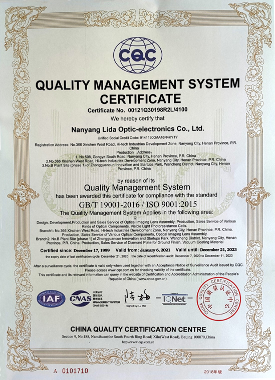 質(zhì)量管理體系認(rèn)證證書(英文)